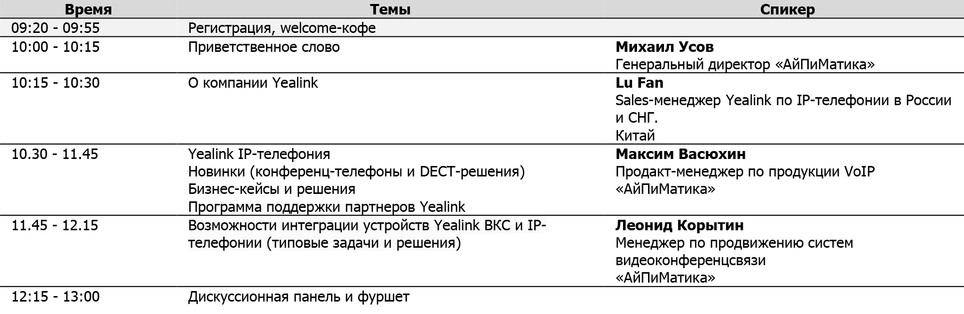 В программе презентации новых моделей и решений на базе IP-телефонов и видеоконференцсвязи Yealink, а также реализованные кейсы, решающие комплексные бизнес-задачи. Эксперты расскажут об актуальных трендах, проведут конкурентные сравнения и разъяснят нюансы партнерской программы Yealink.